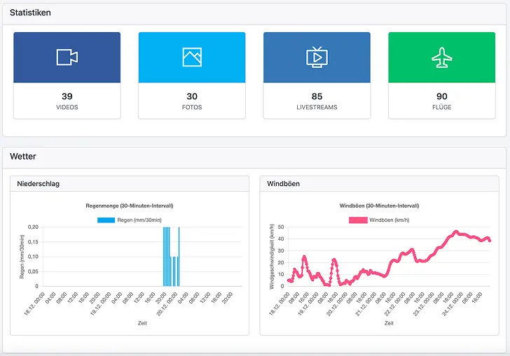 - Letzte Drohnenflüge und Einsatzdokumentationen auf einen Blick